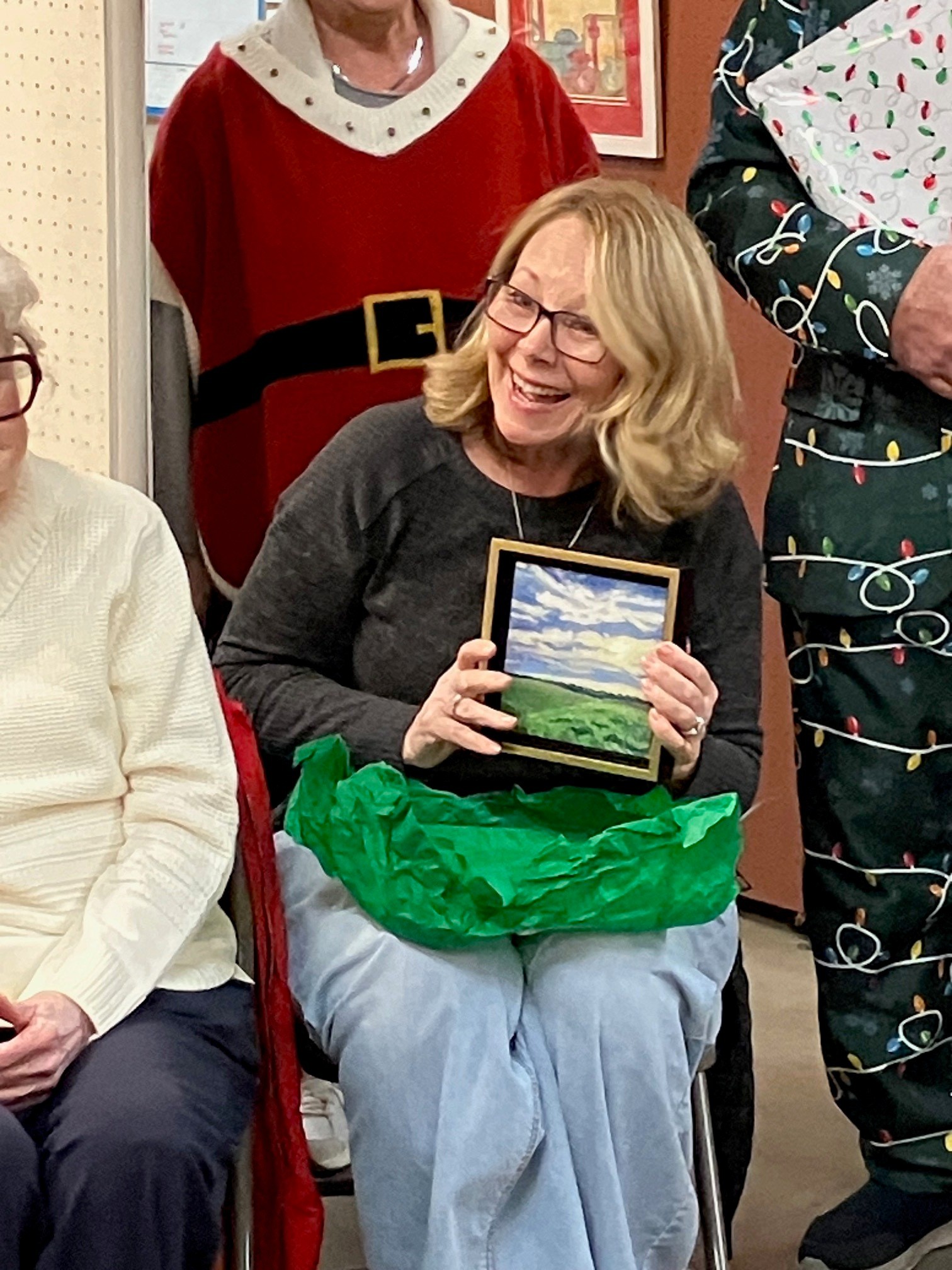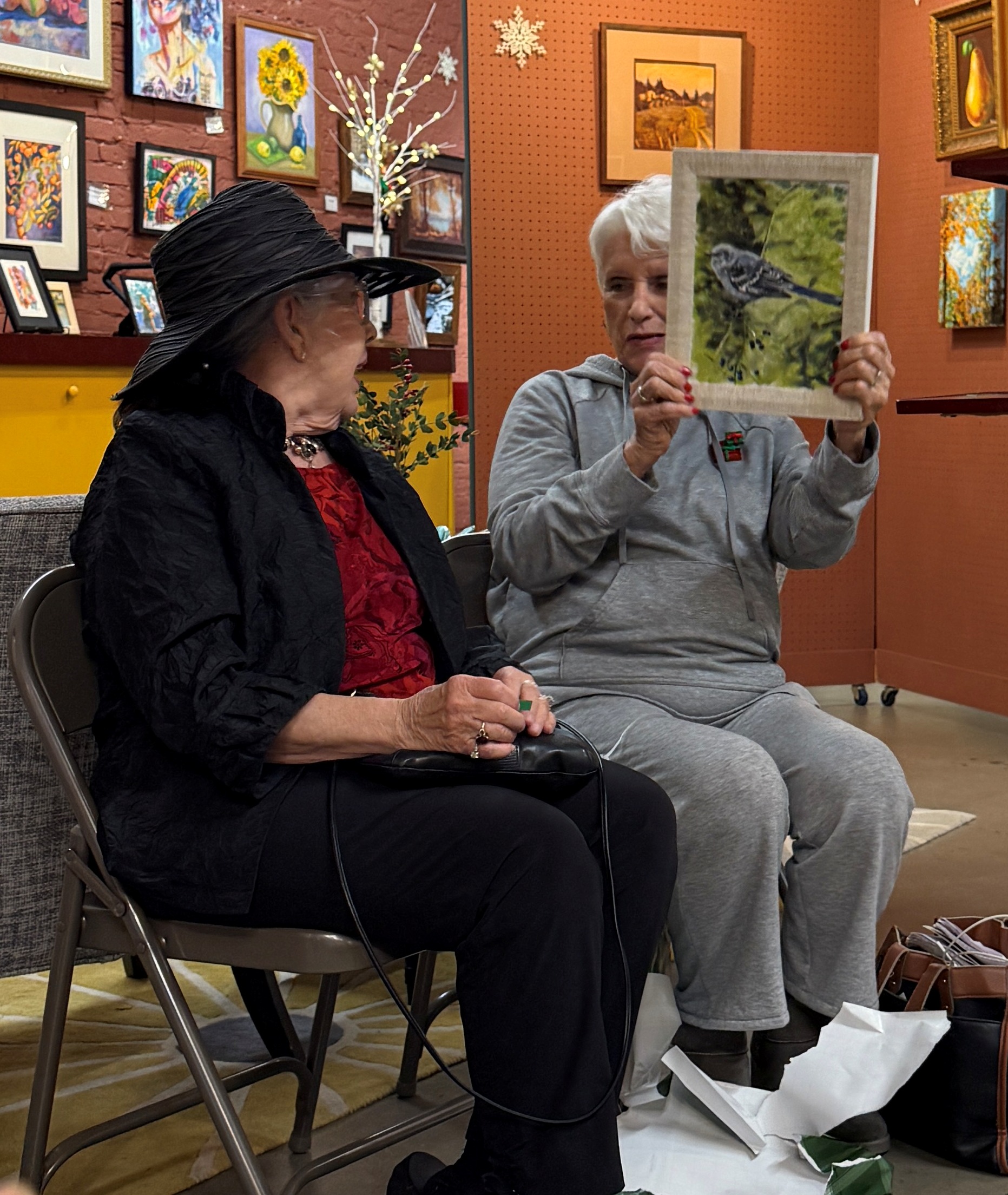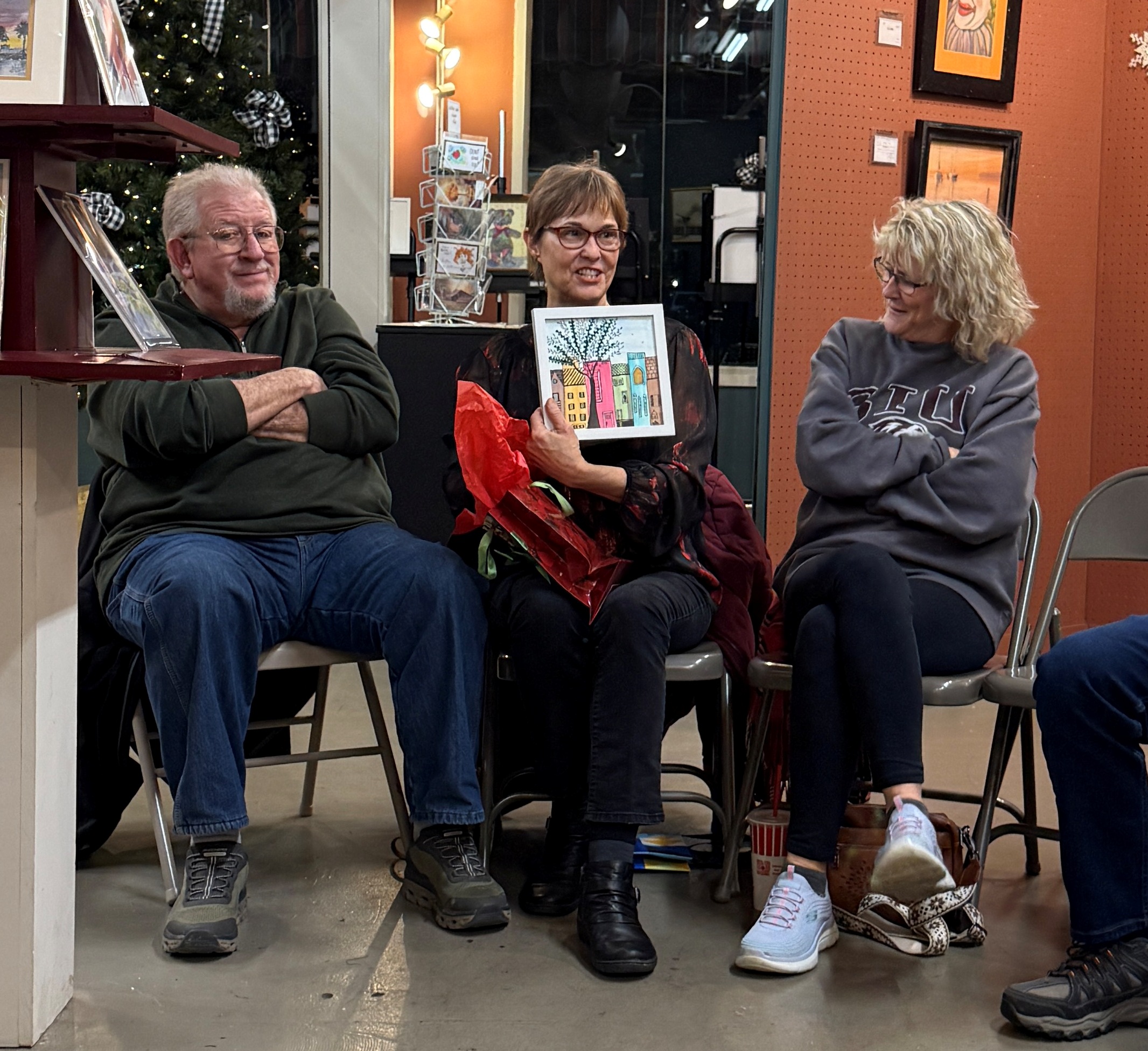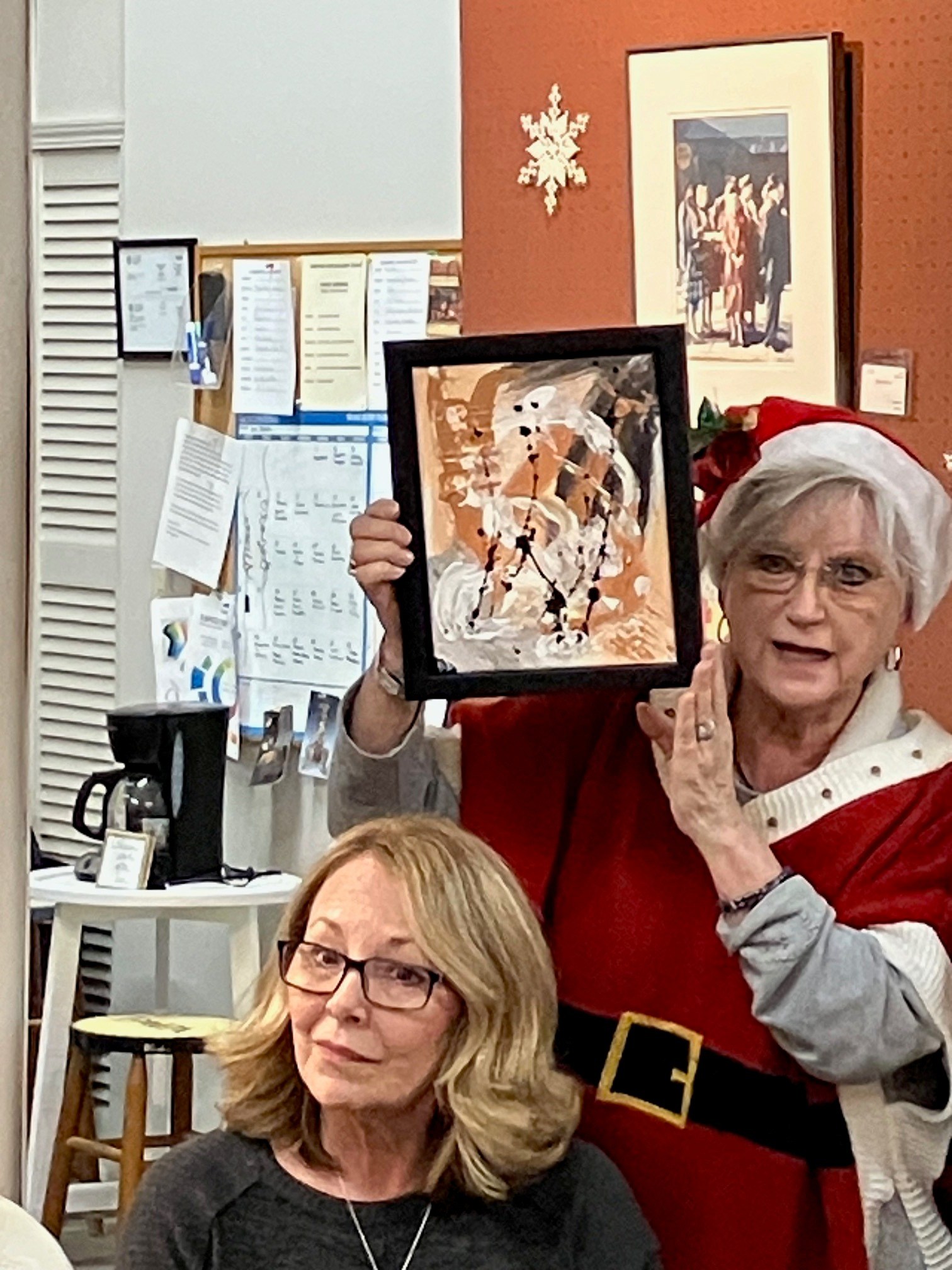 Our December Painting Exchange is always a happy, merry, and festive time. Plus lots of great snacks and artful surprises!