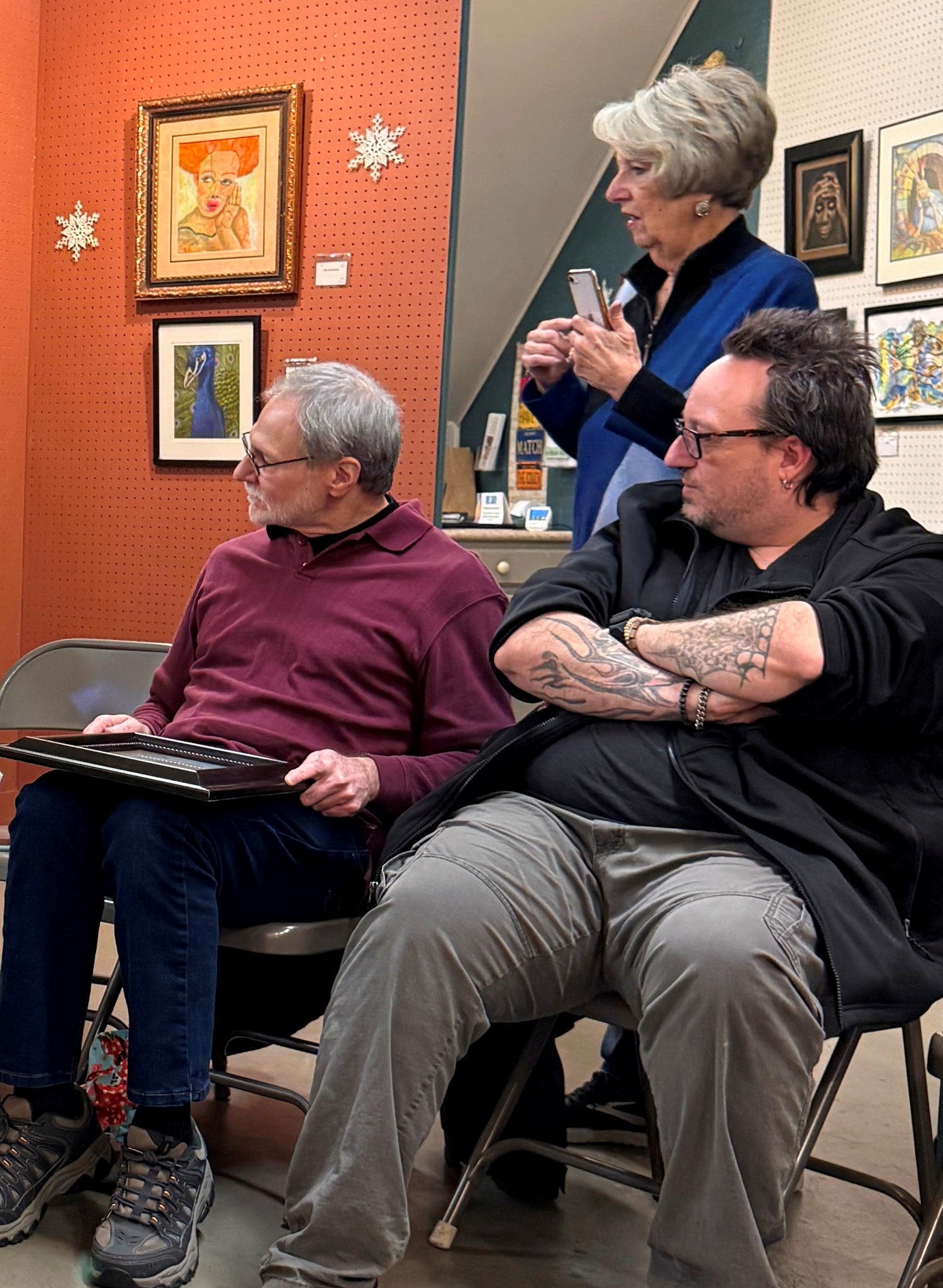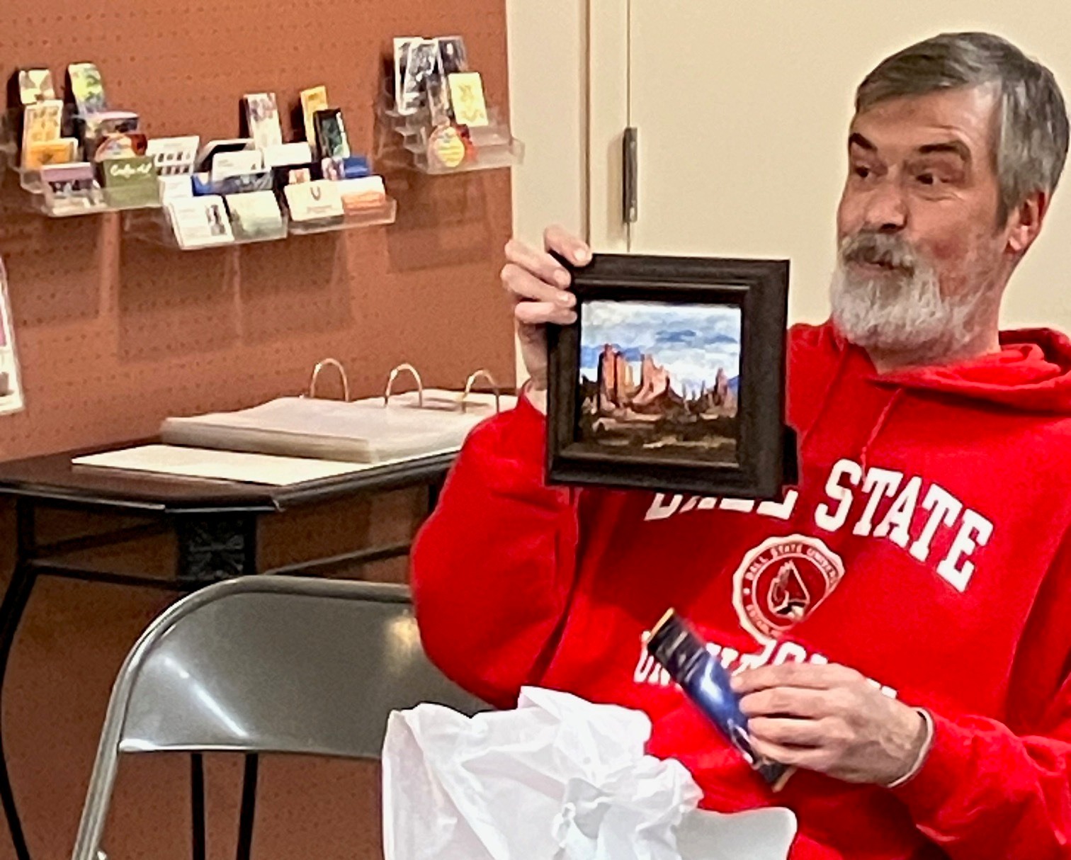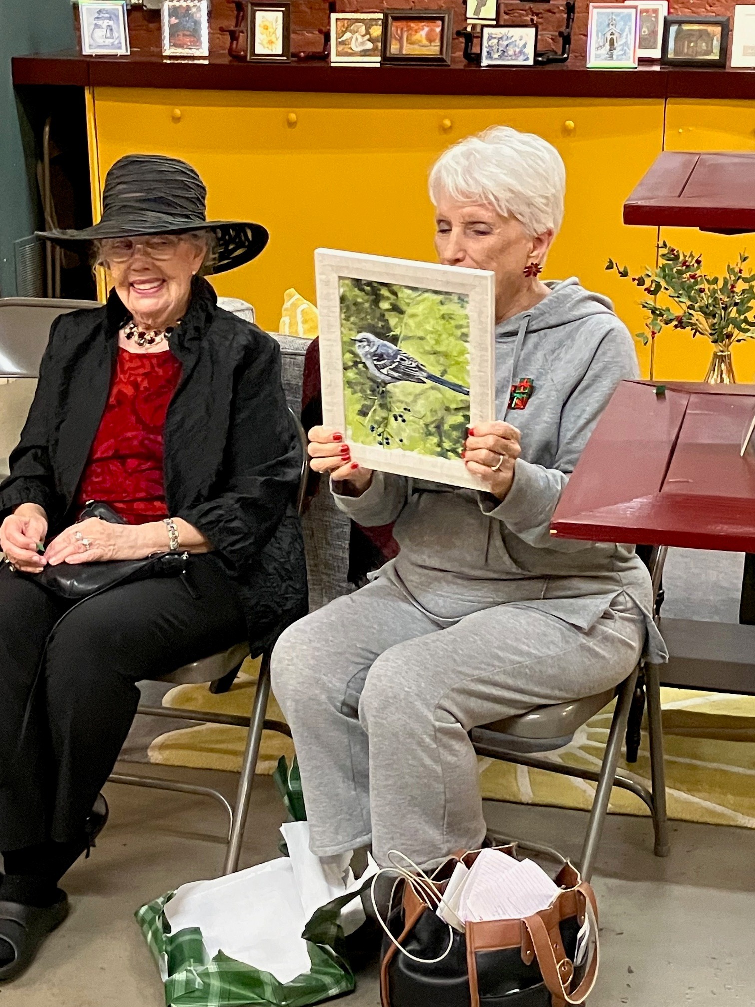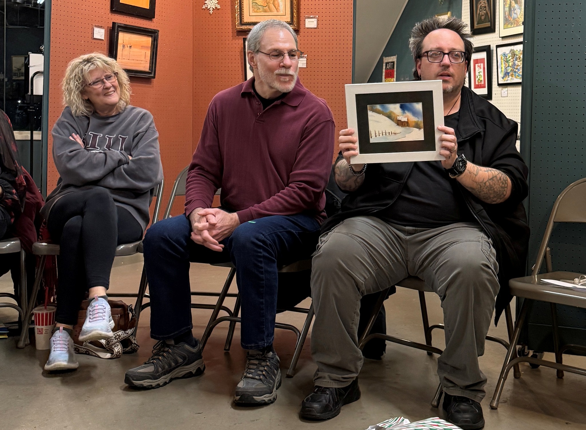 Our December Painting Exchange is always a happy, merry, and festive time. Plus lots of great snacks and artful surprises!