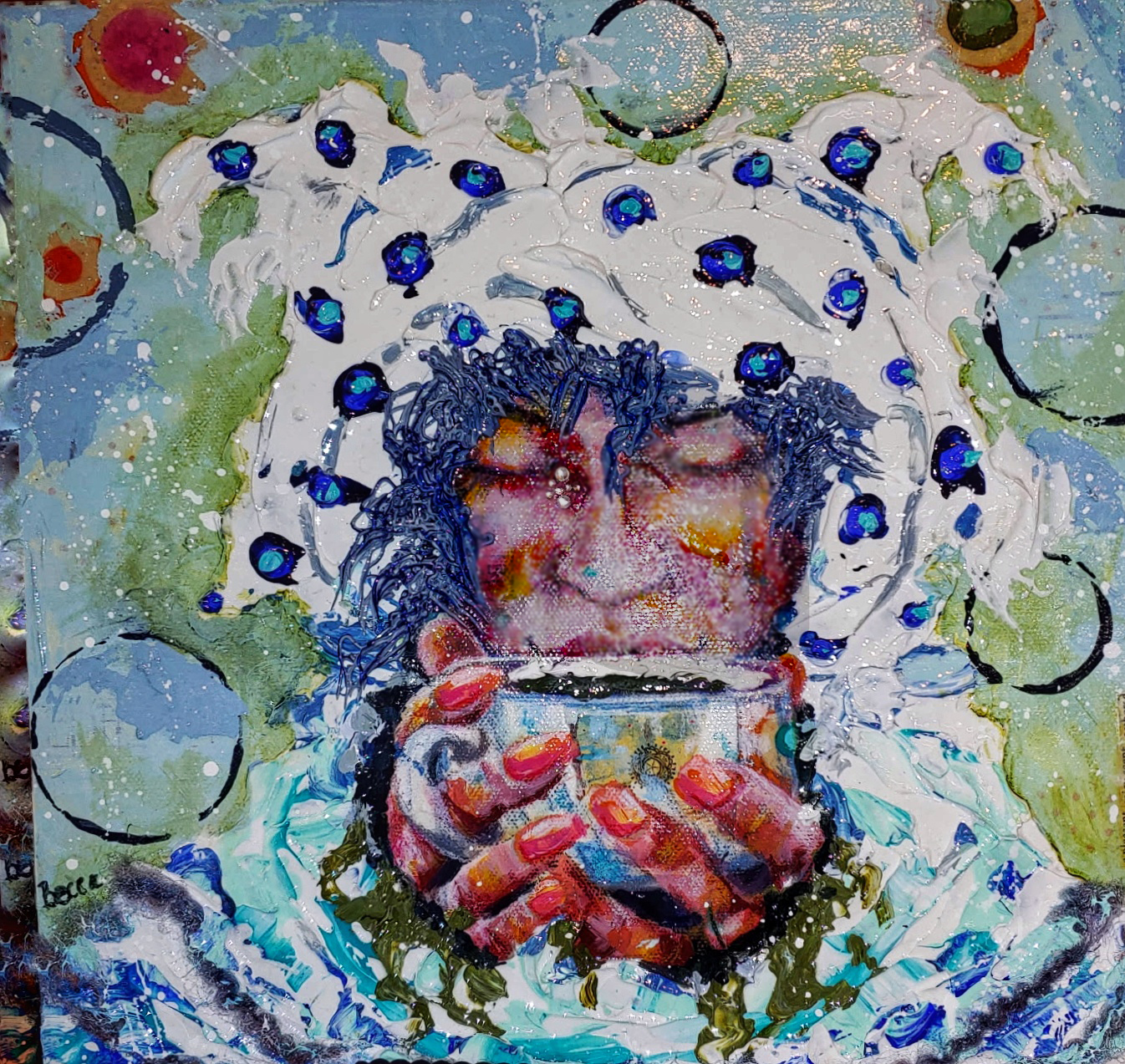 Rebecca (Becca) Mueller-Williams: Becca is a retired teacher living in southern Illinois. She enjoys painting, reading and long walks. Becca has had a love of art since a child, and at 10 was illustrating her own stories. (She currently paints wildly expressive portraits of strong female characters, using acrylic paint and collage items of all kinds, creating mixed media wonders.)
