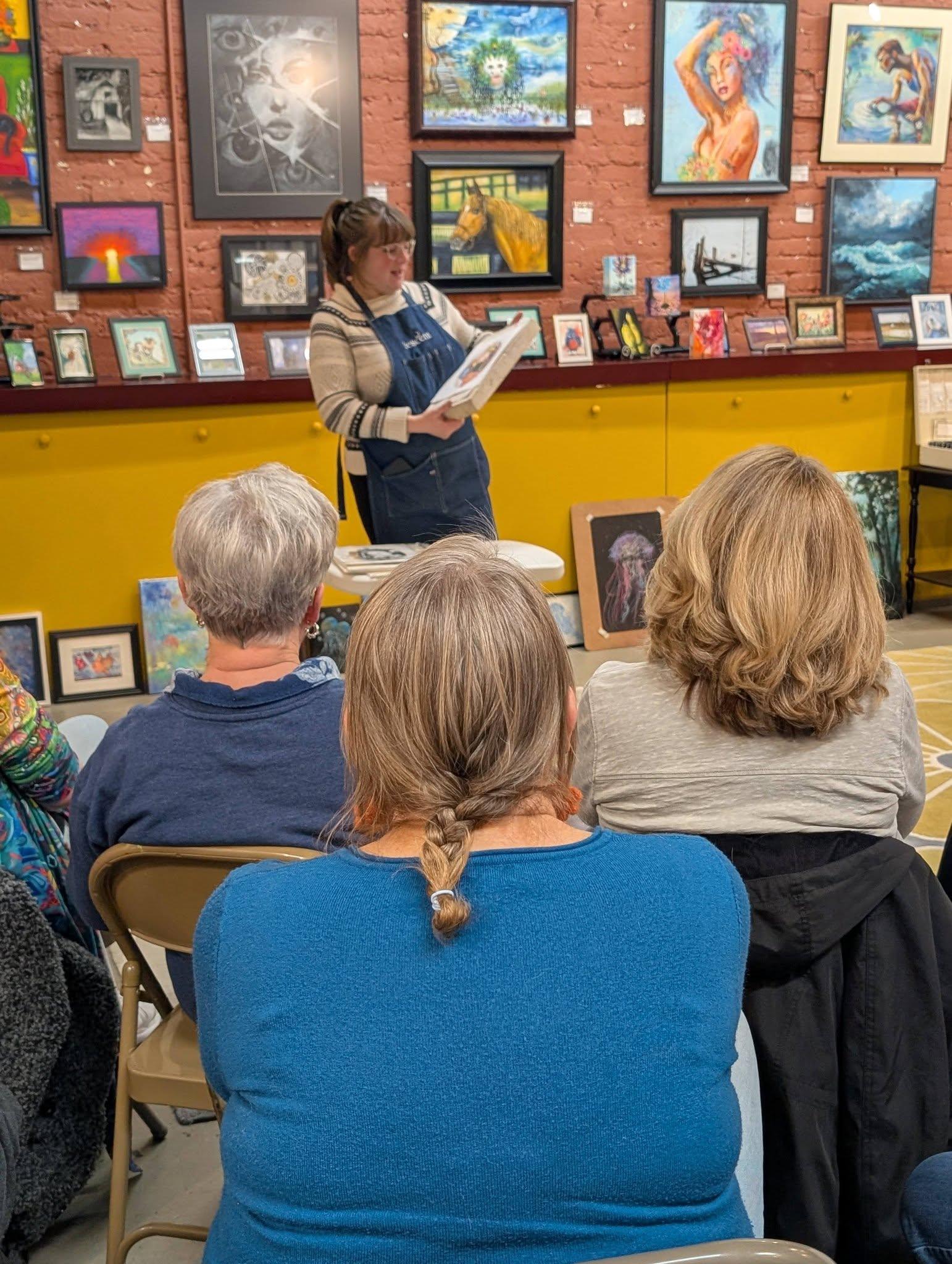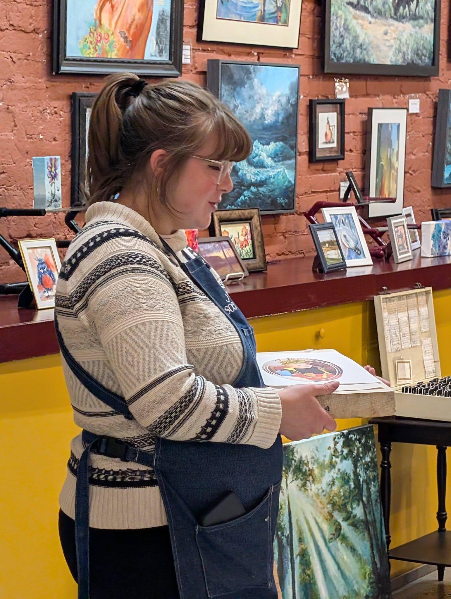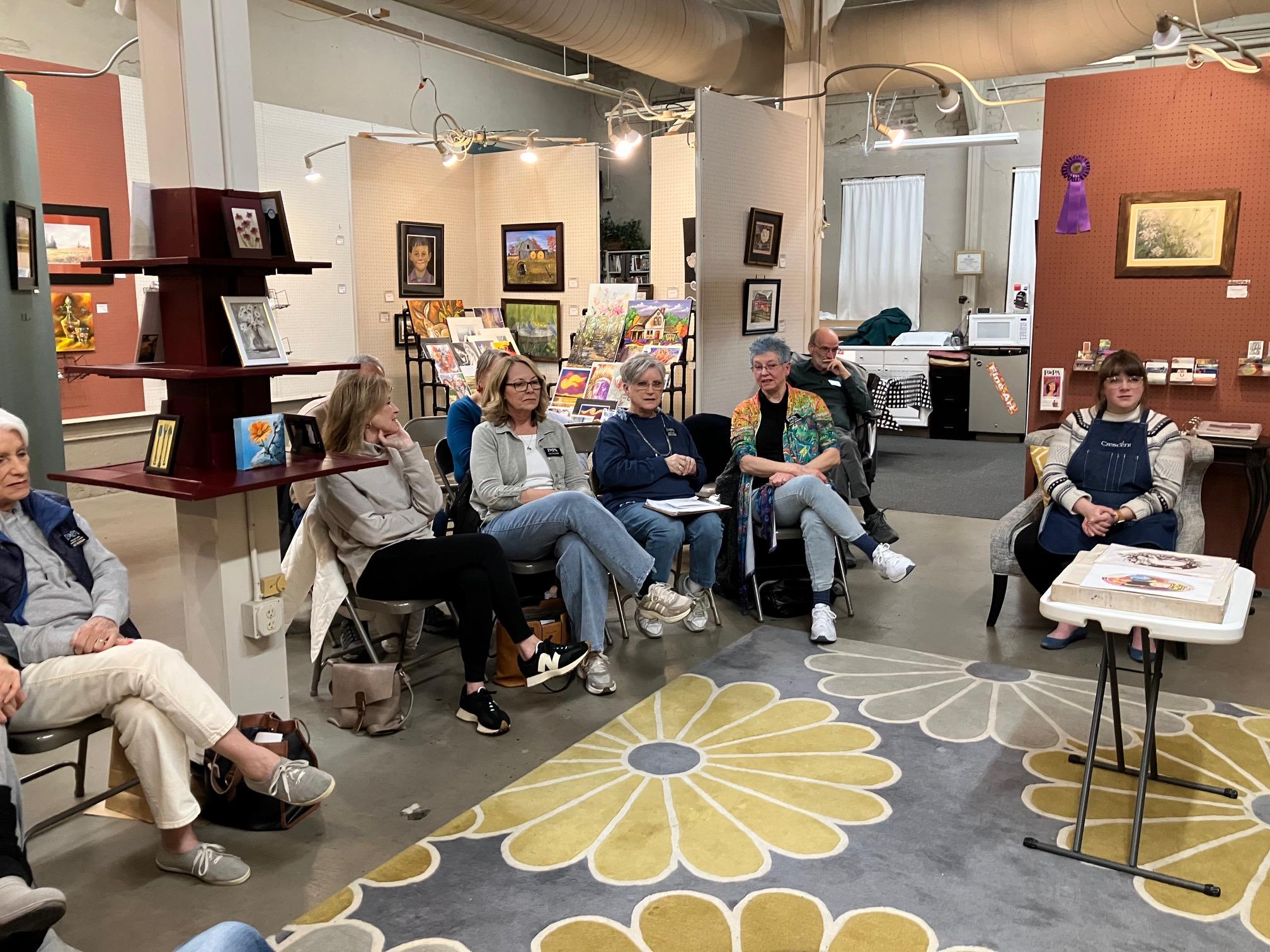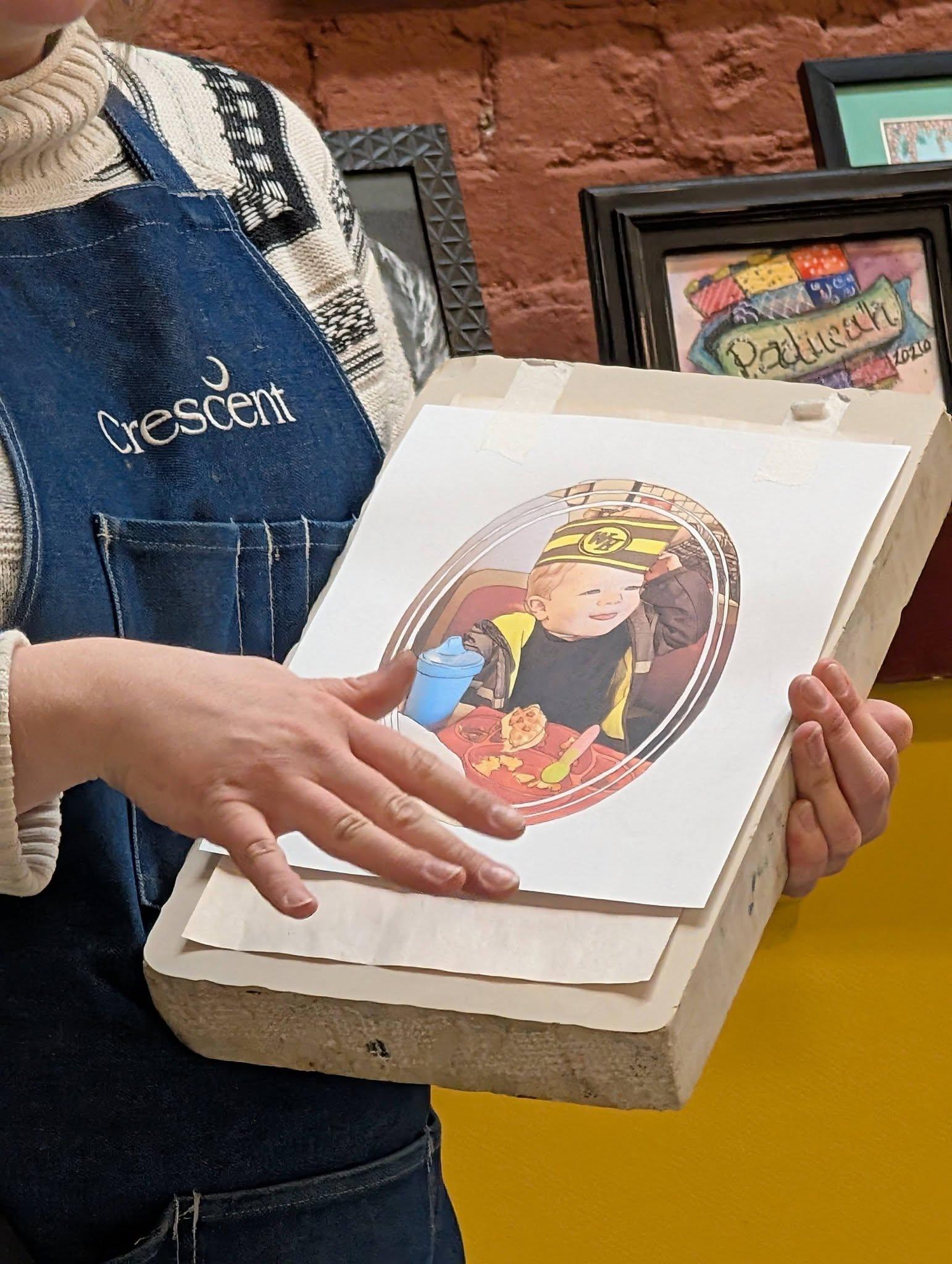 Savannah Vincent, Broadway Custom Framing, shared her knowledge and skills in printmaking at our member meeting. She gave a very informative and interesting presentation on lithographic printing.