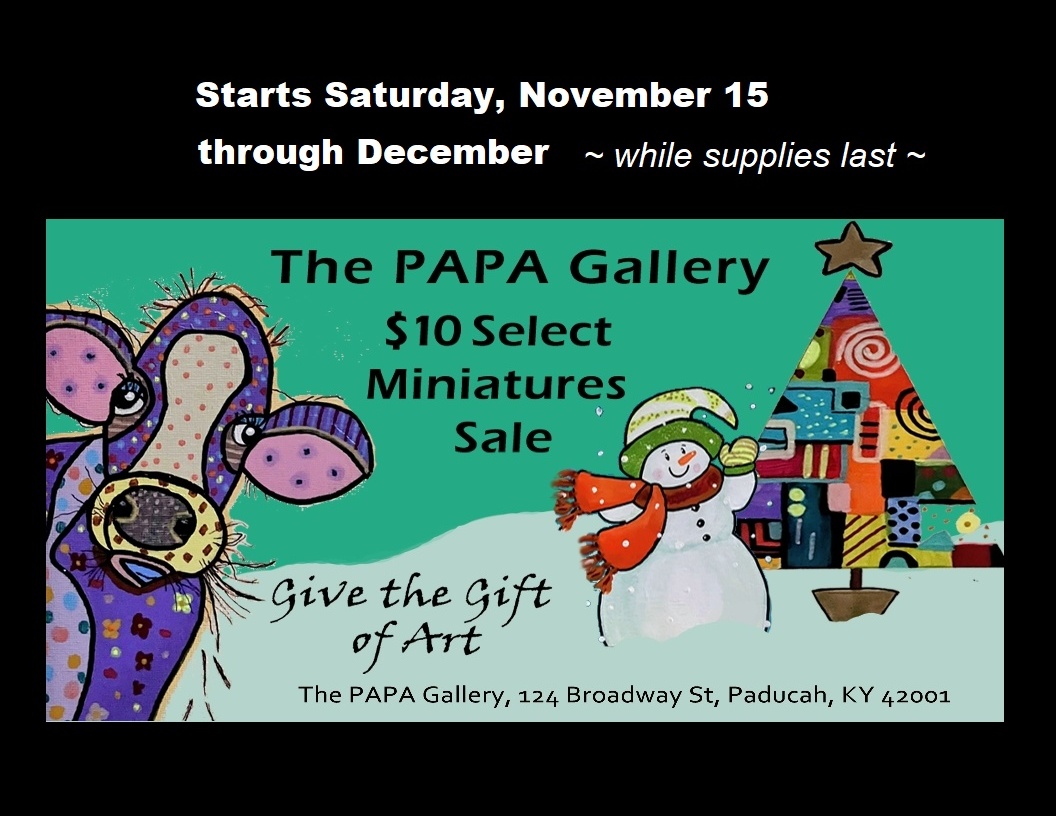 Pick one out and take it home in exchange for a $10 donation to PAPA Gallery.