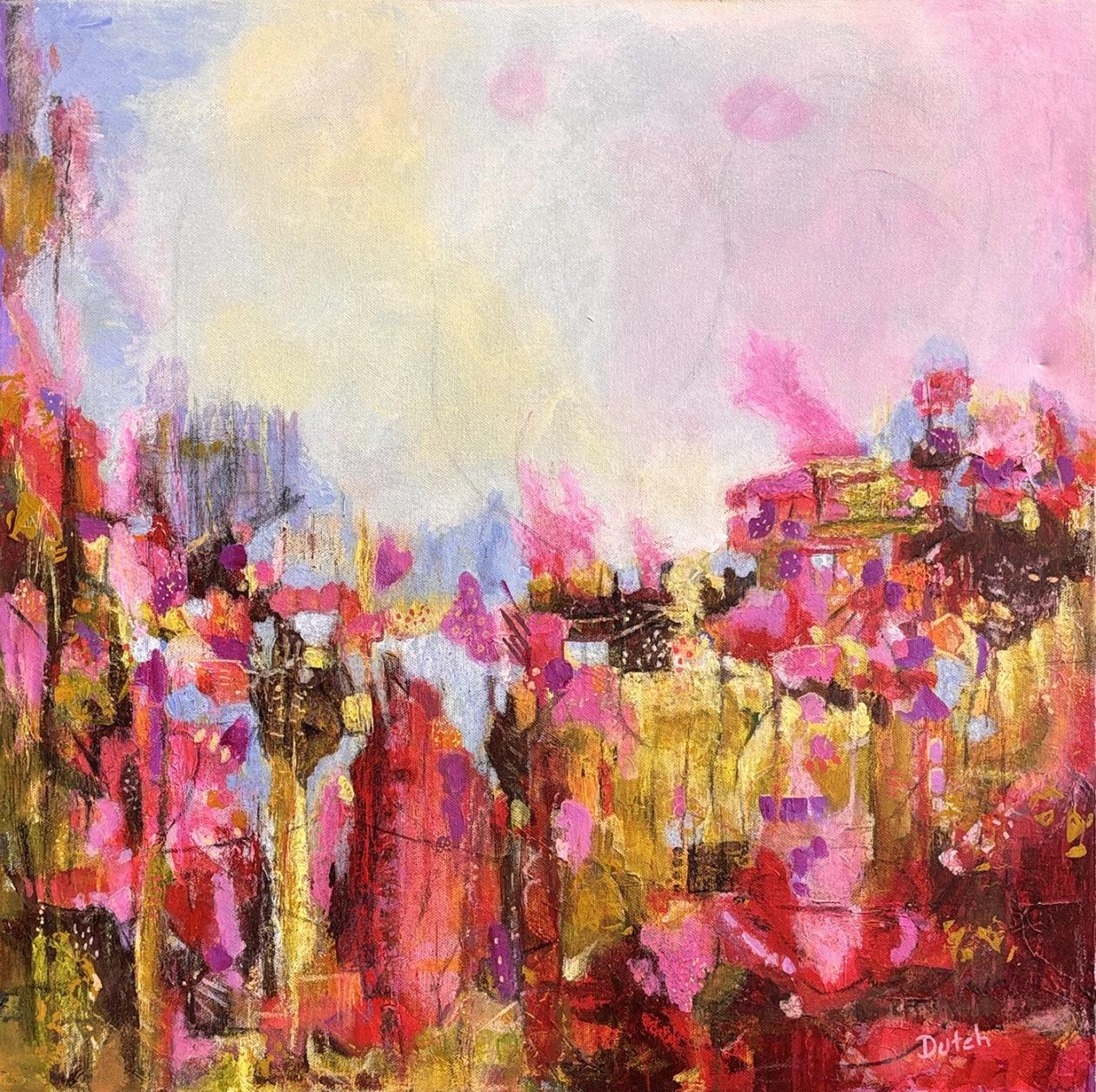 This explosion of color may give you a sudden onset case of spring fever! “Spring Landscape” by PAPA artist Dutch Thurman arrives just in time to beat back the winter doldrums. Dutch’s abstract paintings are rich with color and shapes that tickle your imagination. It’s easy to get lost deep inside them and after a few minutes, you might be reluctant to come back out into real world surroundings.